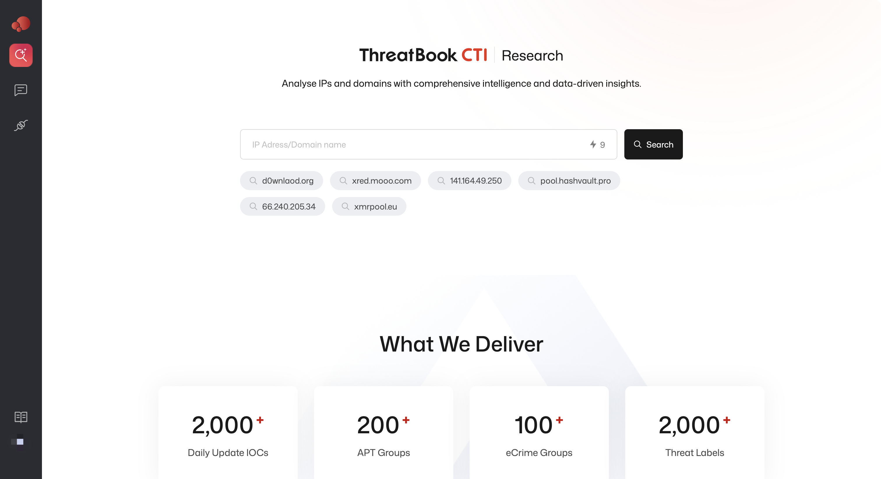Currently, ThreatBook CTI Research is accessible through:- Web Interface – Users can perform manual searches via the platform.